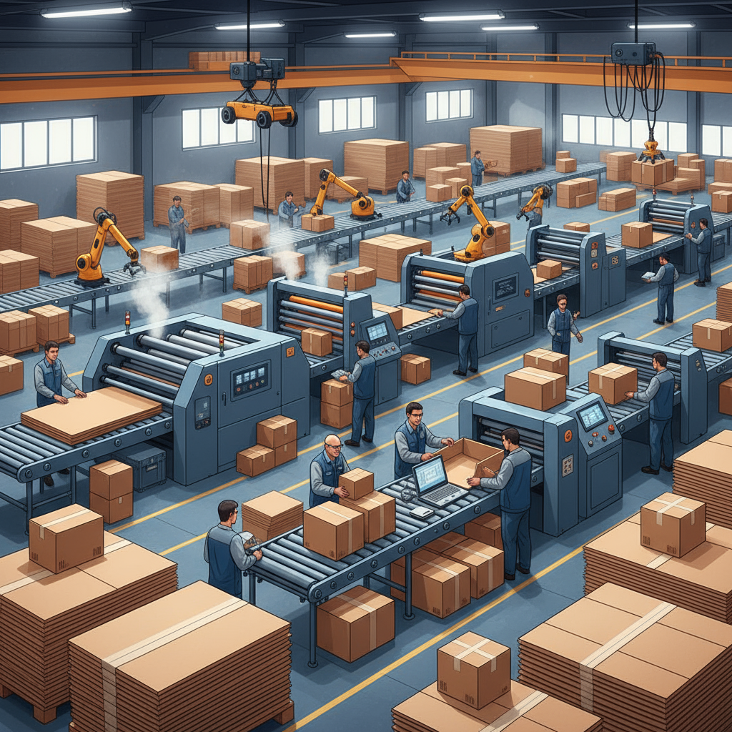 At Megacorr Industries, we manufacture high-quality corrugated packaging solutions using a fully automated production facility designed for precision, consistency, and scale. Our operations are driven by smart manufacturing practices that ensure strong product protection, optimized material usage, and timely delivery across India.