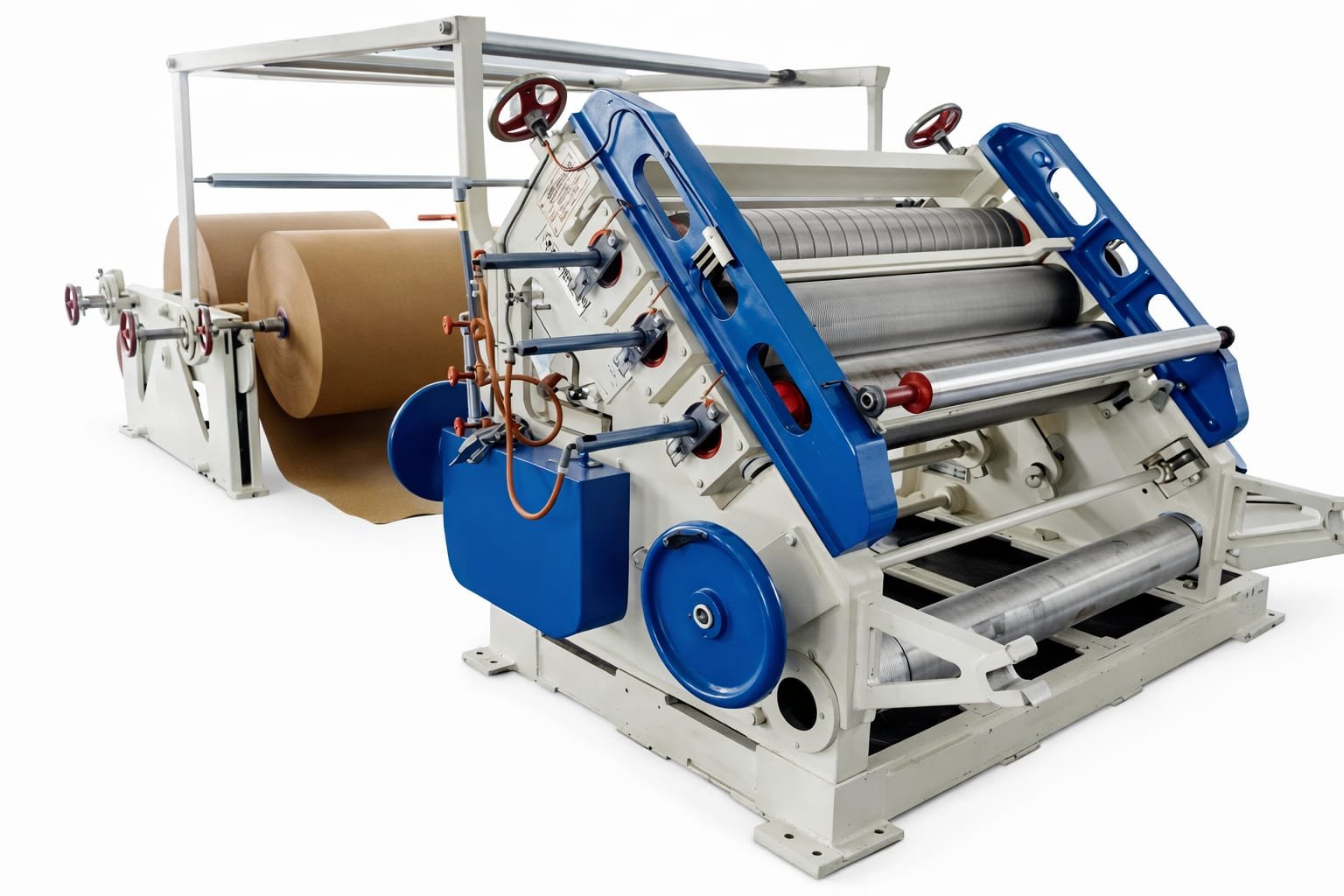 The Finger-Less 46 Corrugation Machine is a heavy-duty, high-speed solution designed for consistent and efficient corrugated sheet production. Equipped with gas heating, dual pre-heaters, imported EN-19 flute and pressure rolls, and a hydraulic self-loading reel stand, it ensures smooth operation, uniform flute formation, and reliable performance at speeds of 30–35 m/min.